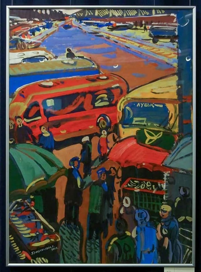 Еще одна работа, которая попала точно "в яблочко", - "Шаурма" Елены Придуваловой. По словам Татьяны Костенко, у этой художницы масса замечательных картин с городскими сюжетами. Но именно "Шаурма", давно хранившаяся в фонде музея, дождалась своего часа и точно попала в цель.