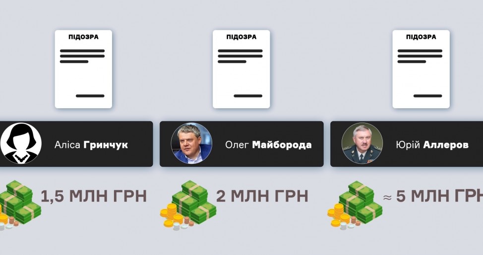 Позже Национальное антикоруцийне бюро и Специализированная антикоруцийная прокуратура открыли производство и оценили убытки на обмене в 82 миллиона гривен. Перечислили правоохранители и причастных: тогдашний глава Нацгвардии Юрий Аллеров, гендиректор "Укрбуд Девелопмент" Олег Майборода, частный оценщик Алиса Гринчук, которая по заказу "Укрсбуда" определила, что квартиры на окраине дороже квартиры в центре, и сам экс-нардеп Максим Микитась. Первой "тройке" выдвинули подозрения и выбрали меры пресечения еще весной. Все трое вышли под залог - за Гринчука "взяли" 1,5 миллиона, за Майбороду - 2 миллиона, за Аллерова - почти 5 миллионов гривен.