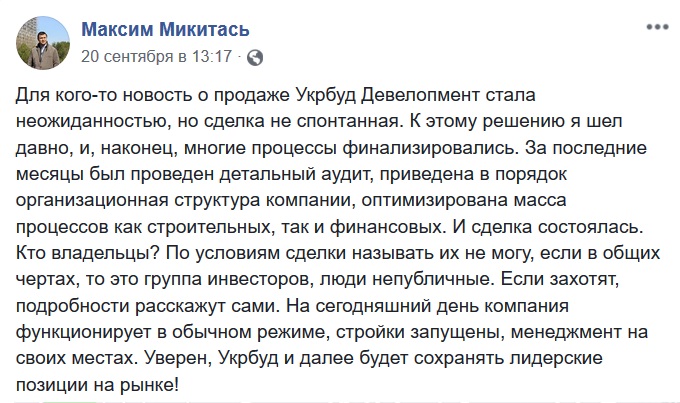 Микитась категорически отрицает свою причастность к «Укрбуду». В сентябре, за две недели до суда по афере с квартирами для Нацгвардии, Микитась заявил, что вышел из строительного бизнеса. В котором он, по его же словам, давно не был.
