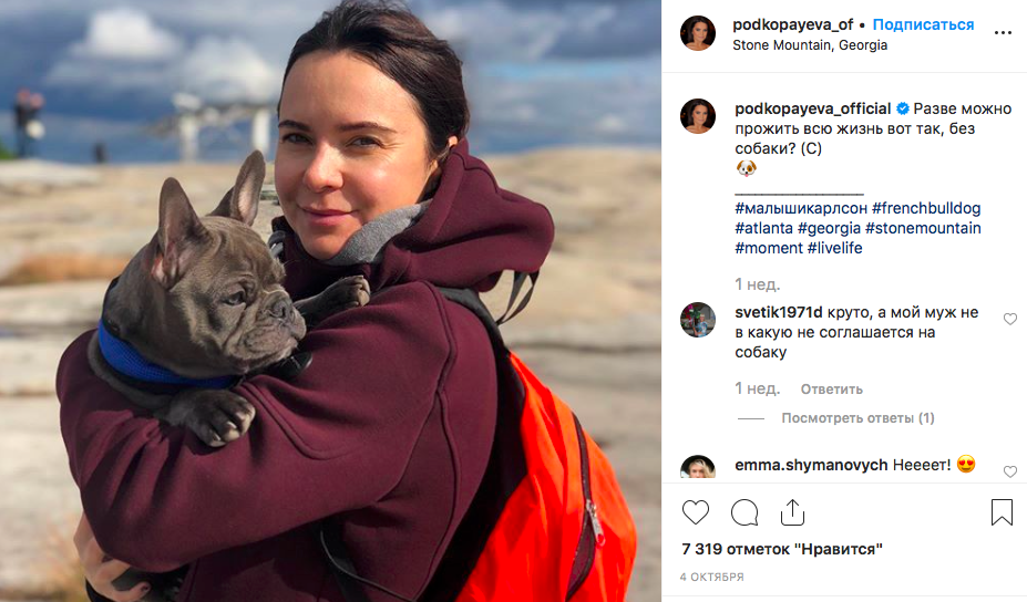 На другом снимке Лилия показывается своего питомца. "Разве можно прожить всю жизнь вот так, без собаки", - подписала фото спортсменка.