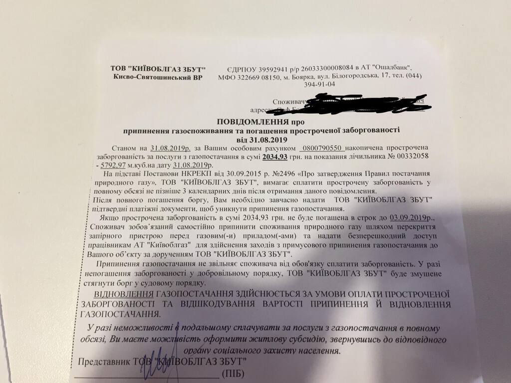 "Признать задолженность в размере 1 928 грн 64 коп. за период с октября 2018 года по февраль 2019 по доначислению по коэффициентом приведения к стандартным условиям незаконной", – сказано в решении суда, который обязал "Киевоблгаз Сбыт" провести перерасчет ( судебное решение по делу № 361/2478/19).