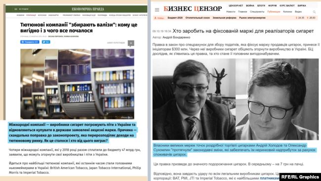 А народний депутат від «Слуги народу» Олександр Дубінський пропонував внести в закон правку: за його словами, вона мала б обмежити монополію компанії «Тедіс», що отримує цигарки від виробників і потім перепродає у роздрібних мережах.