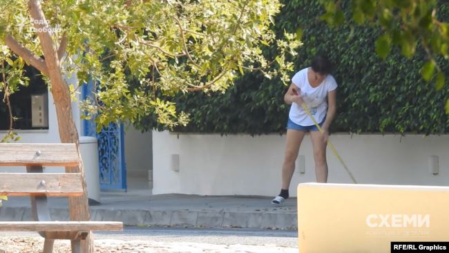 Журналістам вдалося зафіксувати, як на території кіпрського маєтку депутата няня прибирала територію і доглядала дітей Холодова. ЇЇ ім’я вдалось встановити пізніше – це Лариса Деружинська. В її інстаграмі можна знайти фото, де вона позує на території кіпрського маєтку.