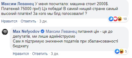 Еще одни человек, который включился в дискуссию, сообщил, что таможенные платежи за машину стоимостью 2 тысячи долларов составляют 75 тысяч гривен (по текущему курсу - это 3 тысячи долларов).