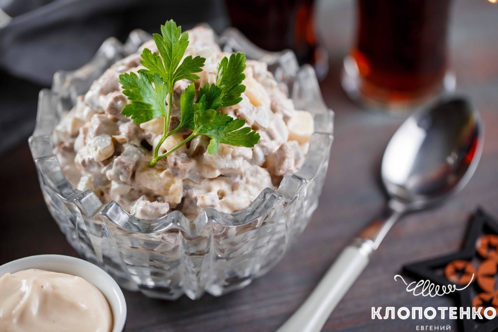 Перейдем к новогодним салатам. Начнем с салата с языком. Да придется немного повозиться – отварить язык, а потом еще и почистить его. Но в результате будет просто нежность. Вы обязательно полюбите этот простой салат и будете готовить его не только по праздникам. Я уверяю.