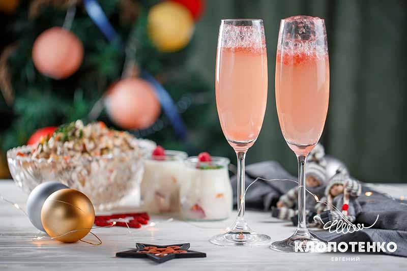 Что касается алкогольных напитков, то традиционным на Новый год считается шампанское. Я решил не изменять этому принципу, но только рекомендую добавить к нему немного сока грейпфрута. Такой коктейль с шампанским имеет интересный терпкий вкус, который я уверен, вы полюбите.