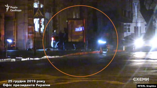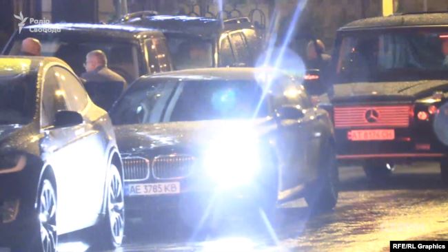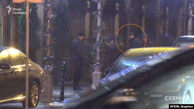 Знімальна група «Схем» помічає, як близько 18-ї з бокових воріт виїжджає кортеж керівника Офісу президента Андрія Богдана.