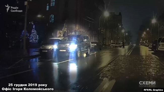Того ж дня біля офісу Коломойського журналісти помітили автівку, що чекала біля заїзду до паркінгу