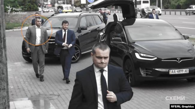Вони підходять до особистого охоронця Богдана і, схоже, розповідають про машину журналістів і йому.