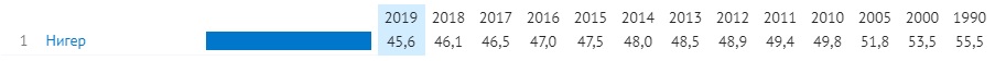 За даними Knoema Enterprise, країна з найбільш стрімким зростанням населення в світі - Ніґер. У 2019 році в Ніґері народилося 45,6 дітей на 1 тисячу населення. Хоча й у них впала народжуваність, якщо порівняти із 1990 роком.