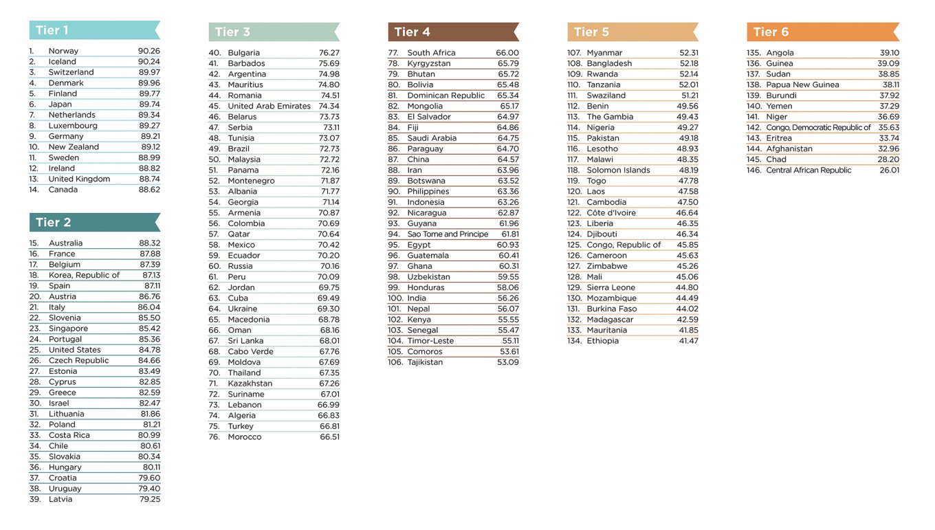 За даними рейтингу, Україна показує хороший результат щодо доступу до базових потреб, але невисокі досягнення в плані можливостей і добробуту.