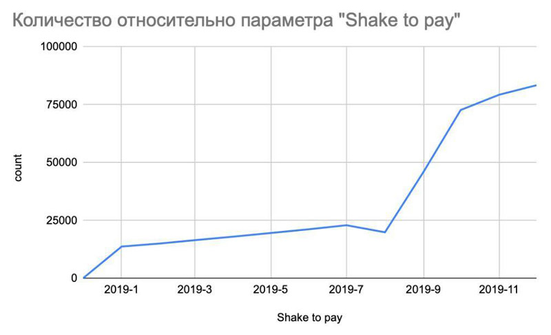 Проект повлиял на многие активности пользователей приложения. Самый яркий пример — данные по shake-to-pay (за такие платежи тоже дается награда). На графике виден скачок роста сразу после запуска «Наград»:
