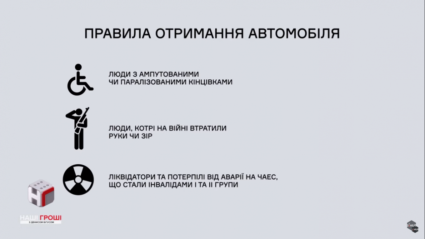 По украинскому законодательству лица с инвалидностью имеют право получить в подарок от иностранца автомобиль. Транспорт по утвержденной Кабмином процедуре признается гуманитарной помощью, поэтому на границе за него не нужно платить пошлину и НДС. Эффективного контроля за процедурой никто не осуществляет, поэтому многие люди пользуются законом, чтобы удешевить импортный автомобиль - просто покупают заграницей авто, вписывают в документы подставных дарителей, и так избавляются обязанности платить налоги.