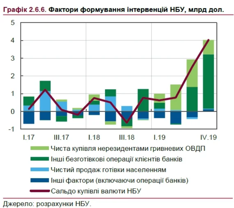 «Гривня укреплялась через преобладание предложения иностранной валюты над спросом на нее благодаря поступлениям от традиционно экспортно-ориентированных отраслей (АПК, металлургия, горно-добывающая промышленность) при одновременных сравнительно сдержанных платежах за импорт, а также значительном притоке долгового капитала (в ОВГЗ — Ред.), как государственного, так и частного. Это сохраняло условия для дальнейшего пополнения международных резервов НБУ и постепенной либерализации валютного рынка», — объясняют в НБУ.