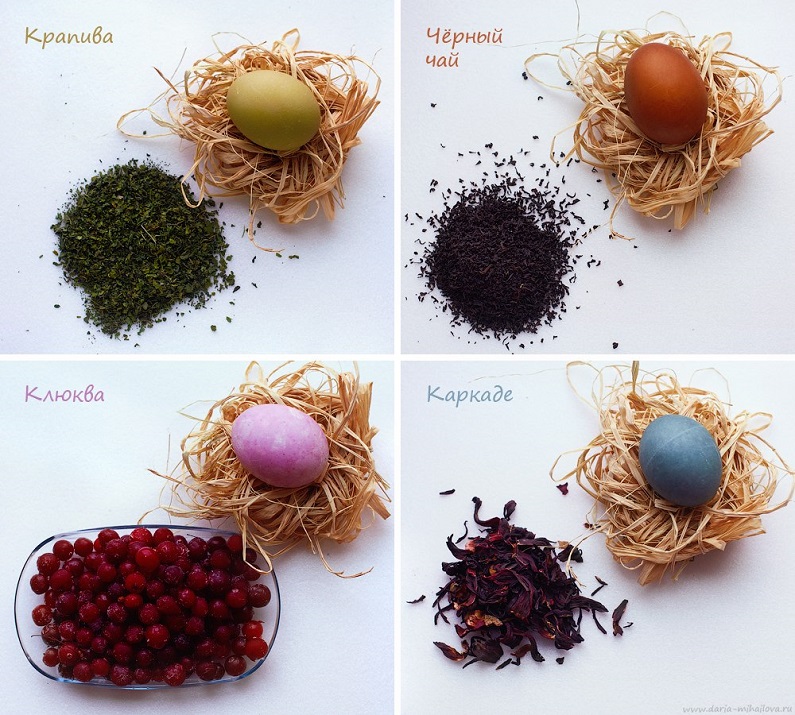 Использовать можно красители как искусственные, так и домашние. Чтобы получить при окрашивании яиц светло-красный оттенок, используйте свеклу или чернику, оранжевый – лук, желтый – куркуму или скорлупу грецкого ореха, светло-зеленый – листья шпината или крапивы, бежевый или коричневый – кофе.