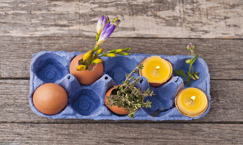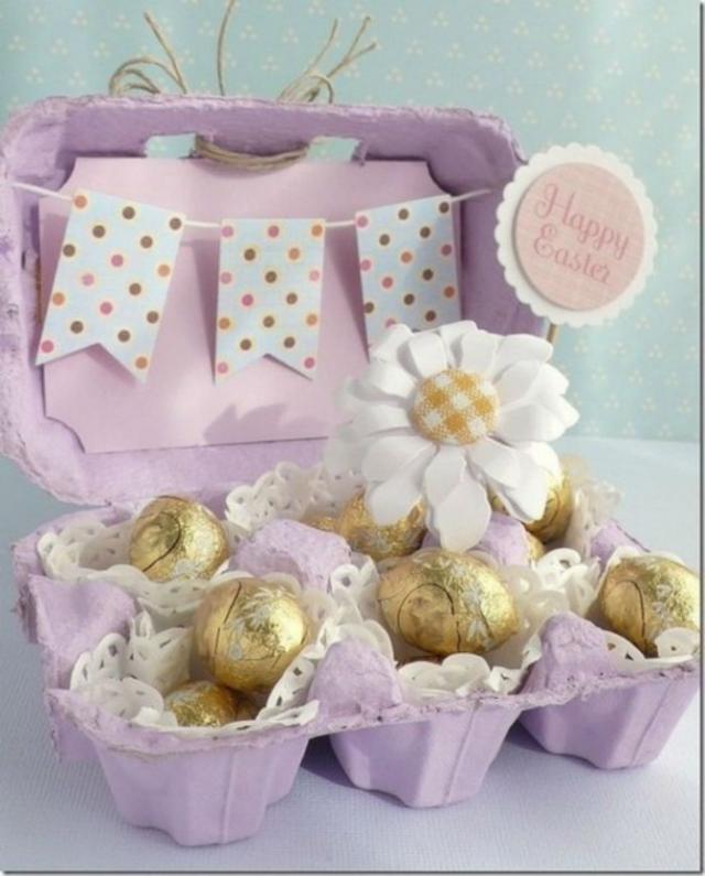 Из доступных вариантов для декора или презентов – подставка для яиц, конфет, игрушек. Ее можно изготовить из лотка, в котором продаются яйца. Окрасить его проще простого – или акриловые краски, или аэрозольная краска.