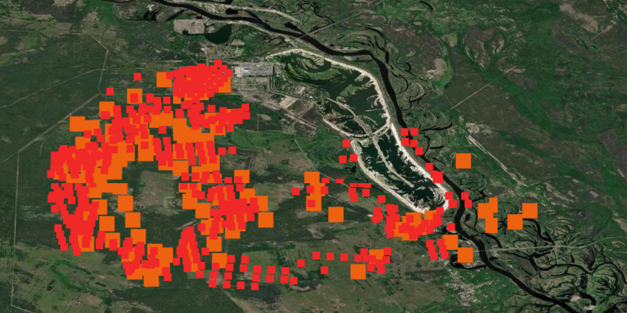 Пожары вблизи г. Припять за 07-13 апреля 2020. Карта: NASA FIRMS