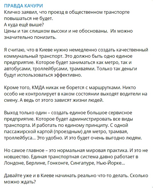 Вместе с тем, среди всех выше перечисленных возможных кандидатов только один проявляет повышенное внимание к происходящему в Киеве. За последнюю неделю активизировался Качура, хотя и ранее киевскими проблемами он опекался не только на словах. Так, еще в октябре он обратился к Кличко с острыми вопросами по поводу состояния Шулявского путепровода. Качура направил запрос о том, куда делся миллиард гривен, выделенный на Шулявский мост. В итоге уголовное дело по реконструкции Шулявского моста легло в основу дела экс-президента государственной корпорации «Укрбуд», народного депутата Украины VIII созыва Максима Микитася.