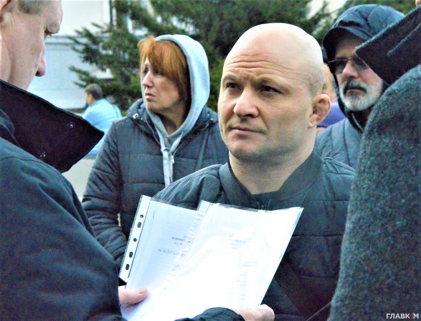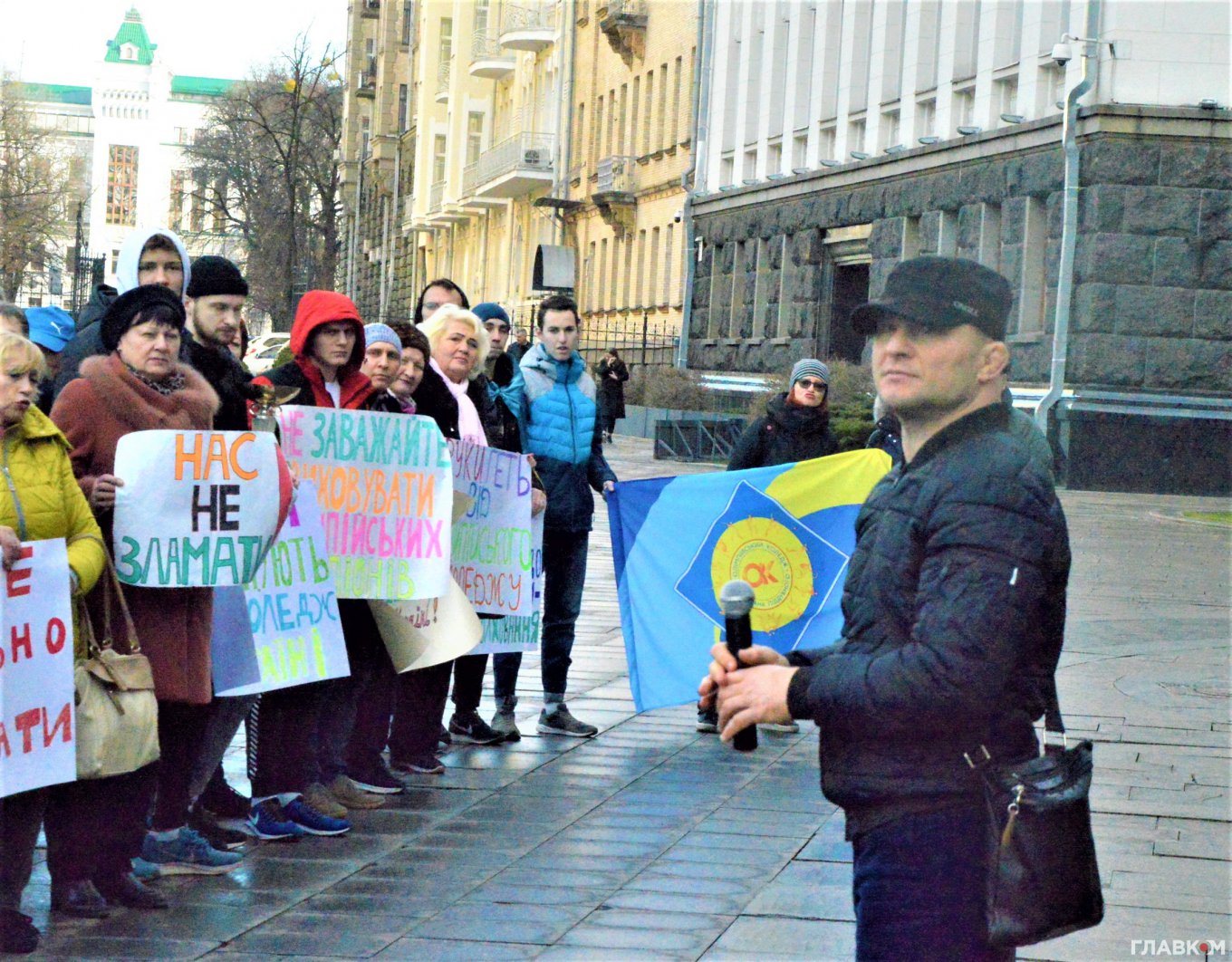 Олексій Семенюшко під час громадської акції біля Офіс президенту