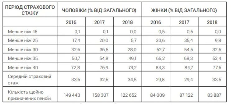 В Украине в 2020-м на пенсию в 60 лет могут выйти те, кто имеет от 27 лет стажа, в 63 года – от 17 до 27 лет стажа. Чтобы выйти на заслуженный отдых в 65 лет, нужно иметь 16 лет стажа. Ежегодно указанные требования будут повышать на 12 месяцев до тех пор, пока на пенсию в 60 лет будут выходить только те, у кого не менее 35 лет стажа.