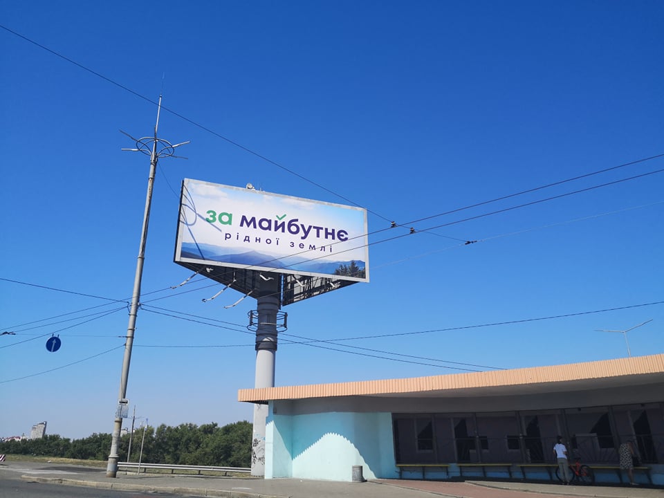 Так, борды партии “За майбутнє” выглядят более чем обычно: голубые плакаты с белыми облаками и слоганом "За майбутнє рідної землі". А в слове "майбутнє" над буквой "й" стоит характерная галочка – такая же, как принято ставить в избирательных бюллетенях.