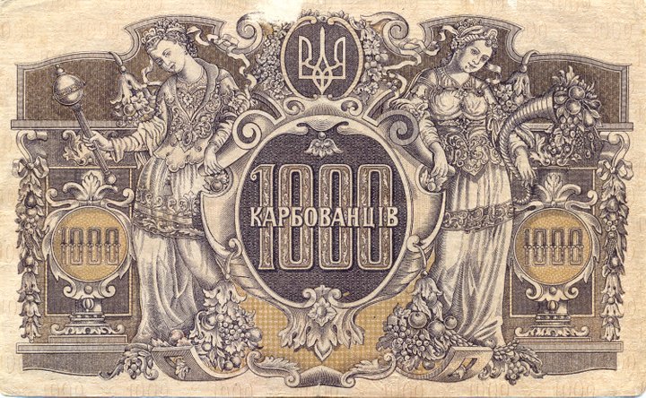 Но гетман Павел Скоропадский возобновил Государственный карбованец. Были подготовлены эскизы банкнот достоинством 10, 25, 50, 100, 250 и 1000 карбованцев.