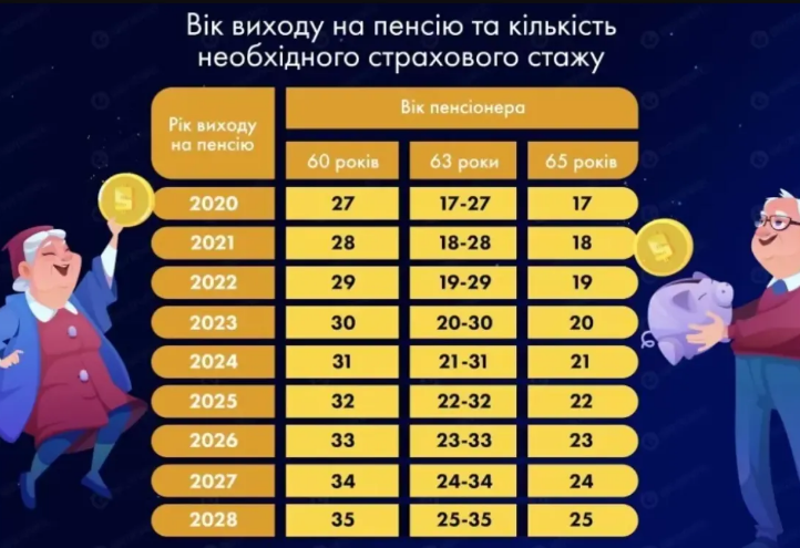 В Украине со следующего года нужно будет иметь как минимум 28 лет стажа для того, чтобы выйти на заслуженный отдых вовремя. Всем остальным придется работать до 63-х (есть от 18 до 28 лет стажа), или 65-ти (есть от 15 до 18 лет).