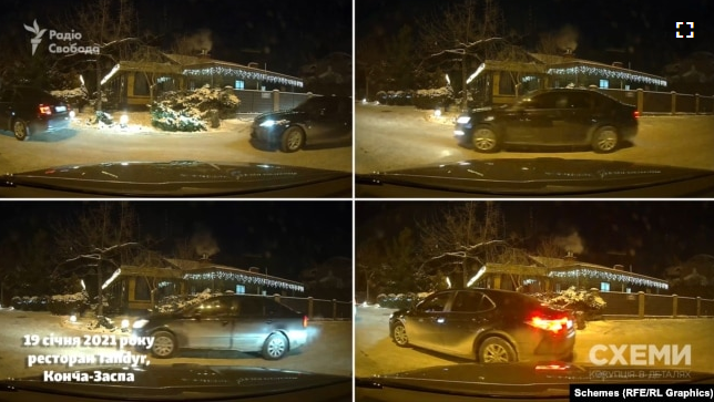 За тиждень, увечері 27 січня, знімальна група зустріла той же позашляховик, коли він приїхав до ресторану «Княжий град» у центрі Києва.