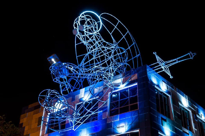 Кроме этого, скульптура будет состоять из целого ряда инновационных элементов: «На эскизе вы можете увидеть ступеньки, под которыми будут находится камеры хранения ценных вещей. Комар будет иметь урны для сбора отходов с пляжа. Также мы хотим внедрить спринклерную систему, как на кораблях, для распыления воды в летний зной (своего рода душ). Комар является и смотровой площадкой. Ведь на Косе всегда невероятные рассвет и закаты. Презентацию других проектов, идей людям мы предложим проводить со смотровой площадки «на спине» Комара. Как на телеканале «TED» Пусть у людей будет своя трибуна)».