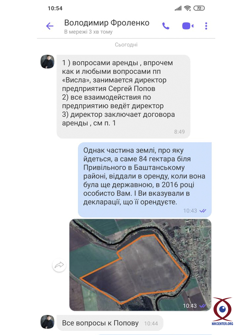 Как земля, которую несколько лет арендовал Фроленко, магическим образом оказалась вновь в аренде, но уже у его предприятия? Об этих странных совпадениях мы написали Владимиру Фроленко в мессенджере, поскольку он не отвечал на звонки. Однако депутат переложил всю ответственность на директора своего предприятия.