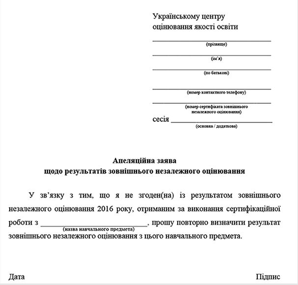 Если участник ВНО не согласен с баллами по тестированию, он может подать апелляцию в течение пяти календарных дней со дня объявления результатов. Заявление об апелляции отправляют в Украинский центр оценивания качества образования - заказным письмом (по адресу Киев, 04053, ул. Владимира Винниченко 5, с пометкой "Апелляционная комиссия УЦОКО") или на email: [email protected].