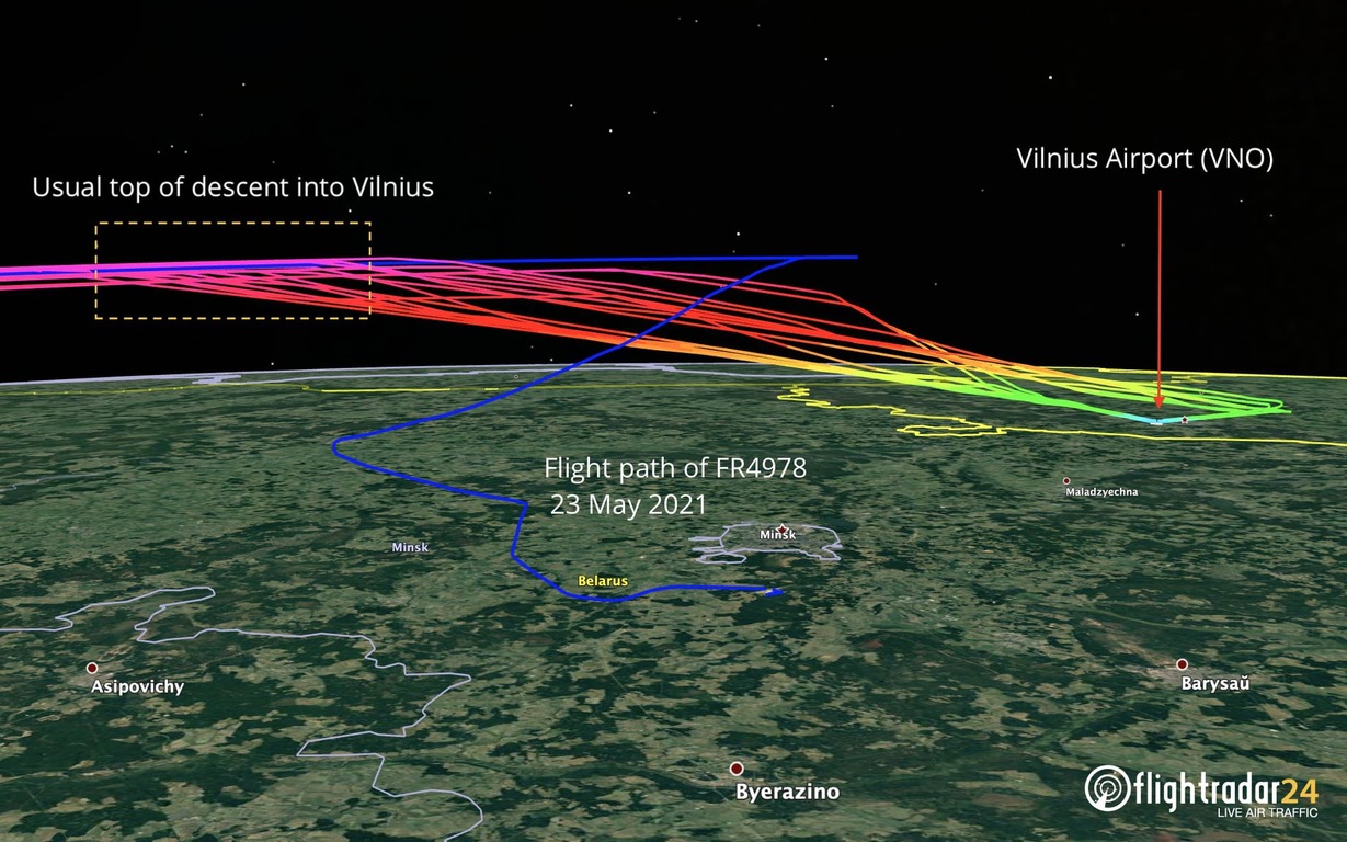 Житель Вильнюса, летевший самолетом Ryanair, отметил, что было ясно, что задержание Романа Протасевича было срежиссировано. При развороте самолета у литовской границы пассажиров лишь информировали о посадке в Минске, а в аэропорту самолет уже ждали несколько пожарных автомобилей, около пятидесяти должностных лиц, служебные собаки.