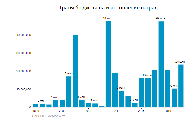 С 1999 года расходы на изготовление наград прописываются отдельной строкой в государственном бюджете страны. Всего за это время на награды было выделено 318,8 млн грн.