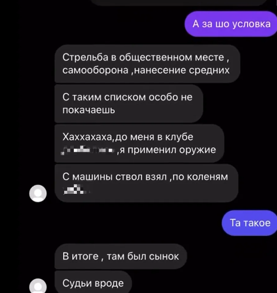 "С машины ствол взял, по коленям ****. В итоге там был сынок судьи вроде. Судился я с ним где-то два года. Потом дали условный и все", – рассказал парень