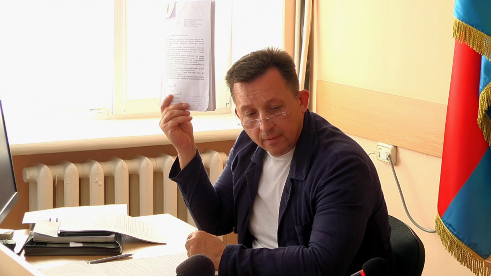 Сергей Бычков демонстрирует списки проголосовавших "за", чьи голоса склонили чашу весов на его сторону