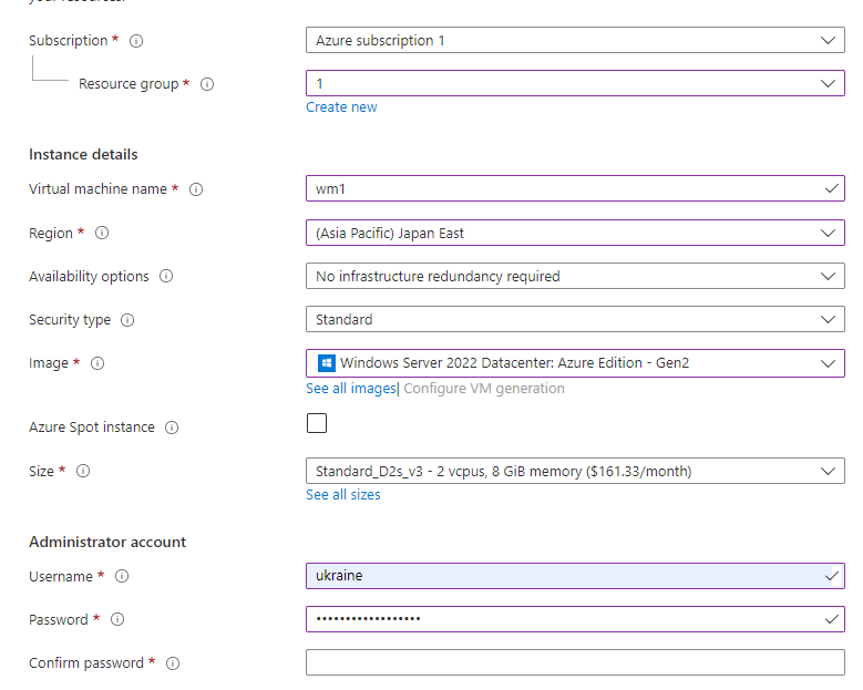 11. Создаём группу ресурсов,если её нет. Операционную систему выбираем windows server.