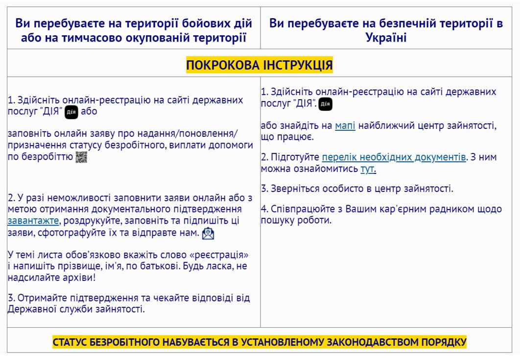 Як стати на облік у центрі зайнятості під час воєнного стану (Джерело: сайт Державного центру зайнятості)