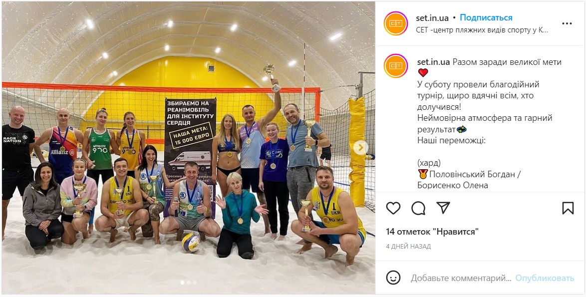 8 жовтня організацією було проведено волейбольний благодійний турнір, на якому зібрали перші 15 тисяч гривень на реанімобіль для Інституту серця.