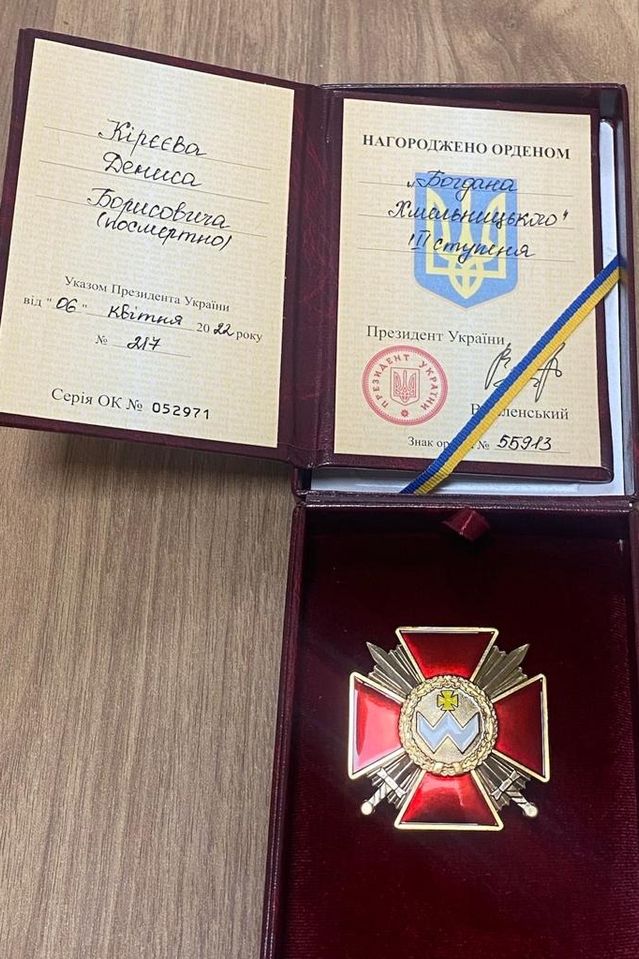 Президент України Володимир Зеленський підписав документи про нагородження Дениса Кірєєва посмертно медаллю за "винятковий внесок у захист державного суверенітету та державної безпеки".