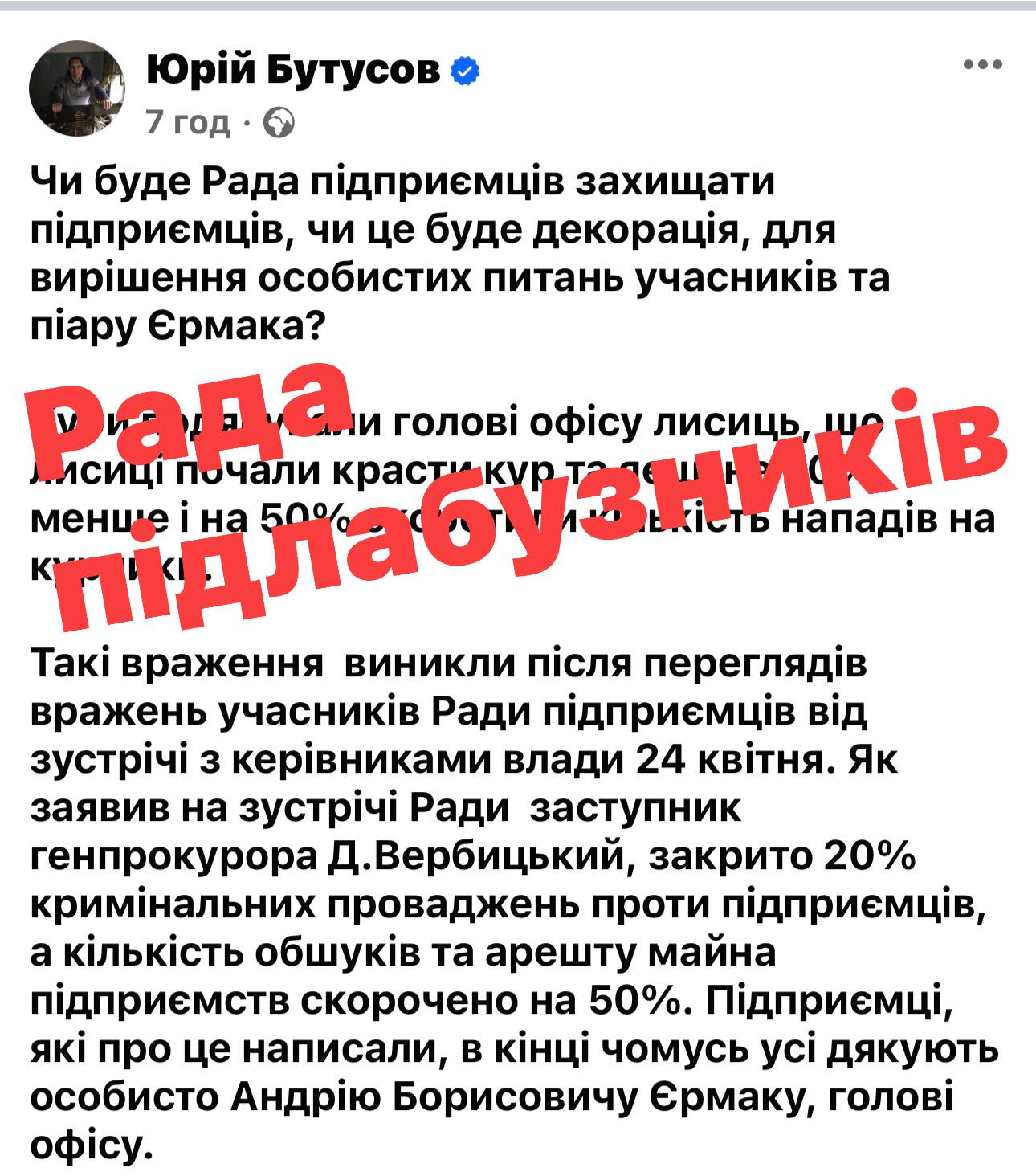 І кращий підсумок зробив Юрій Бутусов «рада підлабузників». Підприємці зрозуміли що фактично їх зрадили і злили «… порішали свої питання, отримали замовлення і лягли під владу».