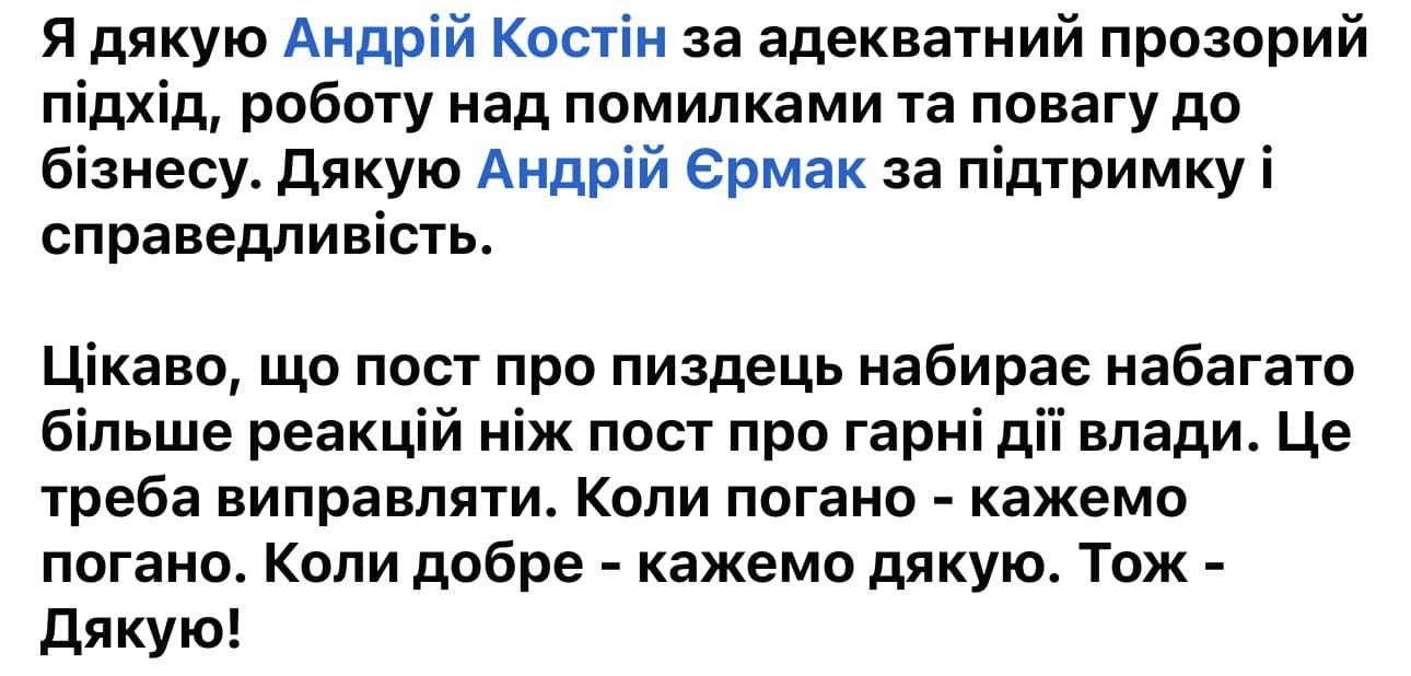 - Апофеозом стали публікації з діферомбами Єрмаку одразу після наради з Генпрокурором як під копірку. Таке враження, що писали тексти на Марафоні і навіть фоточки одні і ті ж дали для публікації. Особливо дратували відмітки Єрмака та Костіна, типу " бачите ми відпрацювали".