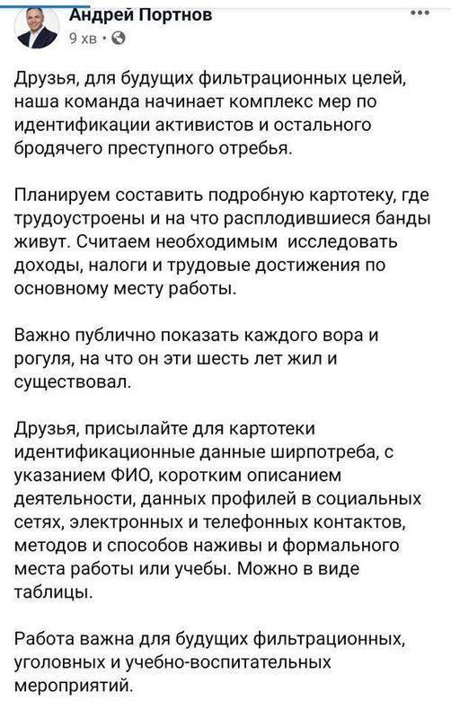 Портнов був головним архітектором репресій за часів Януковича. І, як це часто буває у цинічних проросійських діячів, він втік на Захід — той самий, який сам же поливав брудом. Кишеньковий юрист Януковича створював правову базу для репресій проти Євромайдану та брав участь у розробці законів, що грубо порушують права та свободи громадян.