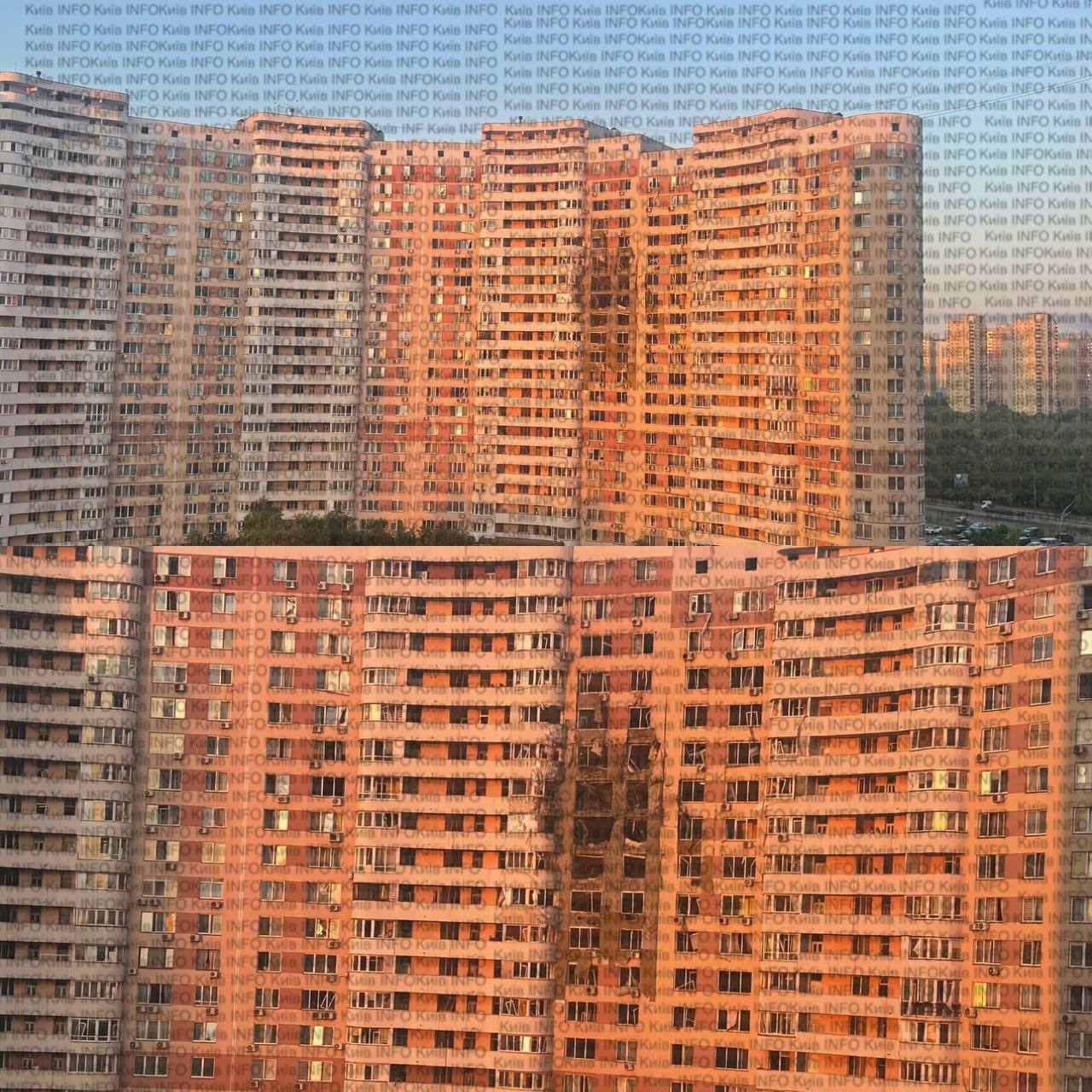 У Святошинському районі внаслідок влучання БпЛА в 12-поверховий житловий будинок сталось руйнування ліфтової шахти та прилеглої квартири. Також є пошкодження та пожежа в зоні нежитлової забудови.