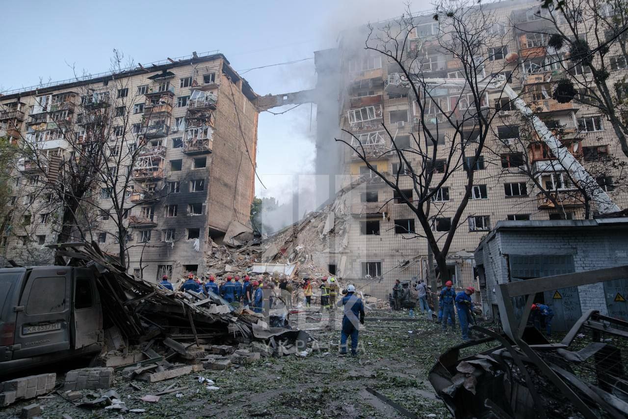 Ракета пройшла через всі поверхи і аж до підвалу. 9-поверховий будинок просто склався. Є загроза обвалення конструкції цього житлового будинку.