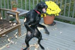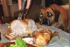 Пес делает вид, что не смотрит в тарелку хозяина (видео)