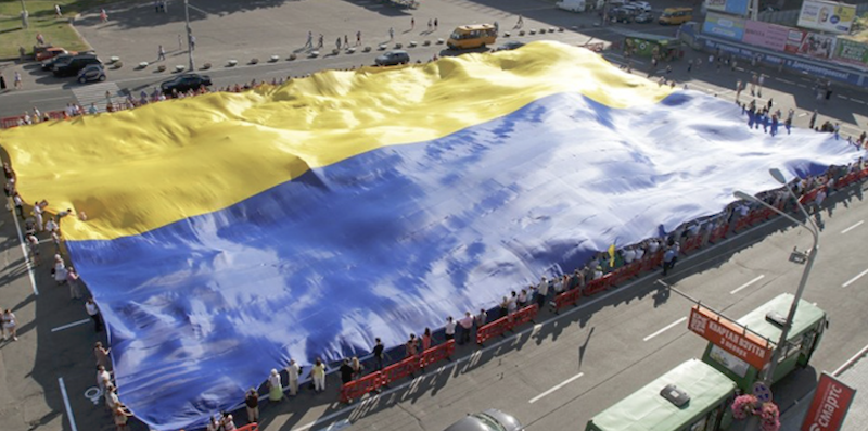 Найбільший прапор нашої країни було внесено до Книги рекордів України. Він вражає своїми неймовірними розмірами: 40 метрів завширшки та 60 метрів завдовжки, при цьому дотримані всі пропорції – 2:3.
