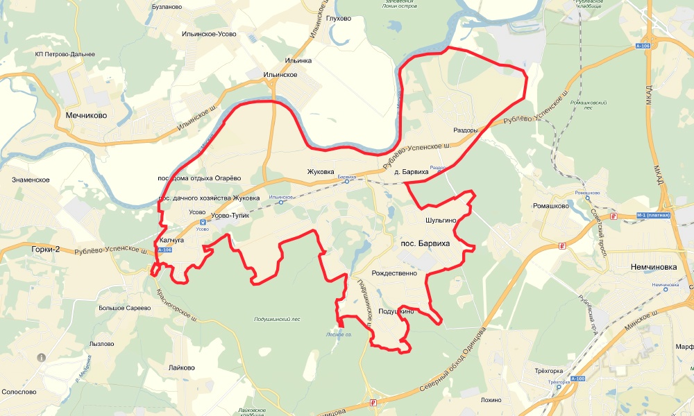 Особо охраняемая зона. Камеры на каждом столбу. Все дороги — федеральные трассы. Госдачи и олигархи, жмущиеся к этим дачам.
