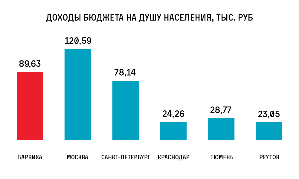 А если взглянуть на бюджет Барвихинского сельского поселения, то видно — на душу населения он уступает только Москве и опережает все остальные города в стране.