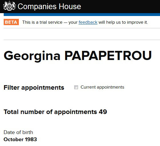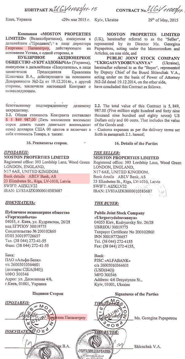 Від компанії Moston угоду з державним підприємством "УкрГазВидобування" підписала жінка з типово "британським" прізвищем Георгіна Папапетроу, яка насправді є кіпріоткою. Вона є не тільки директором, але не номінальним власником прокладки. Загалом Папапетроу очолює аж 49 фірм.