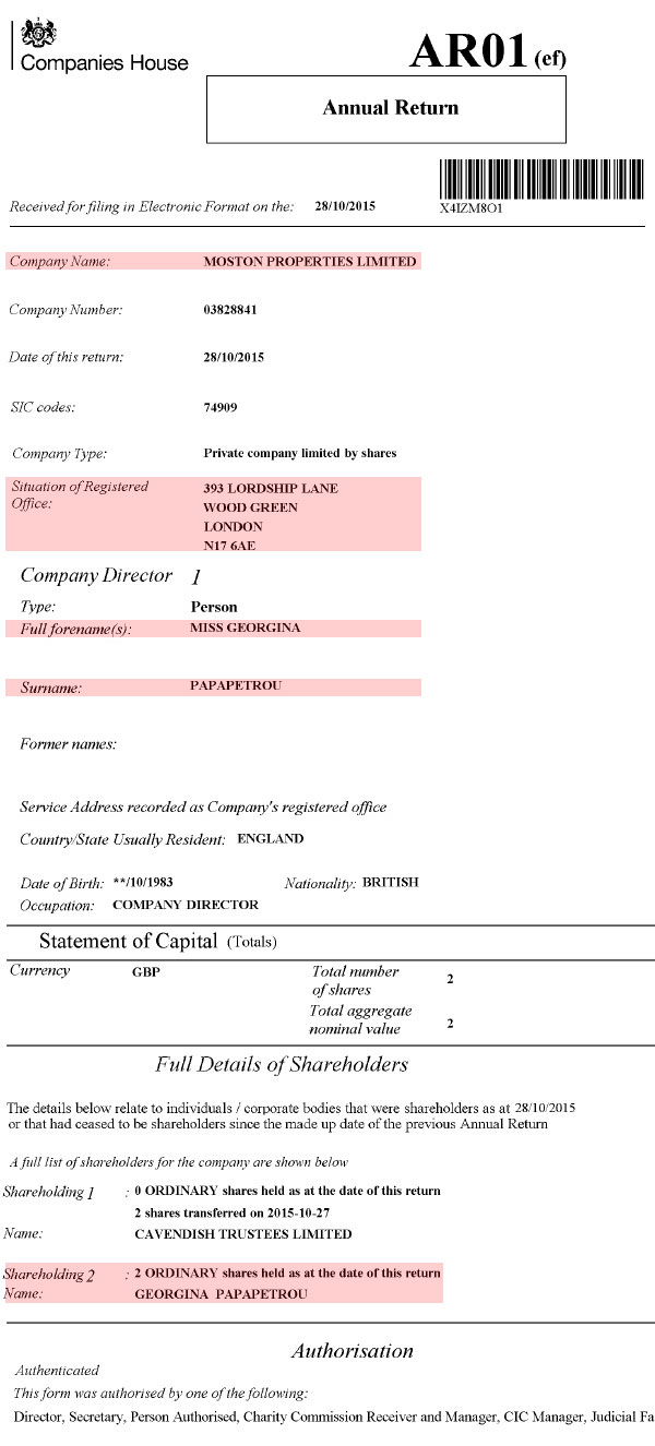 Попри реєстрацію в британській столиці, фірма Moston є звичайною прокладкою з непрозорою власністю. Згідно з статутними документами, які можна офіційно отриматв в англійському державному реєстрі, статутний капітал фірми складає 2 (два) фунти стерлінгів.